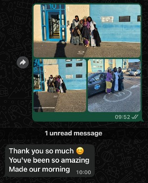 Jackie picked up family in pic going to church, got there within a few mins, said how lovely they all looked took some pics for them asked if they’d like to be on our socials they agreed. Sent her the lovely message attached!
